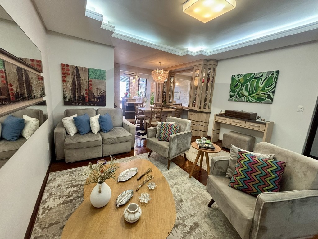 Um apartamento completo, elegante, pronto para morar, com conforto e bom gosto em cada detalhe. A área social é ampla e integrada, com sala de estar e jantar bem iluminadas, sacada incorporada com churrasqueira, criando um espaço perfeito para receber amigos e aproveitar bons momentos. A cozinha é espaçosa, funcional e completa, com área de serviço separada. Possui 02 dormitórios e banheiro. Conta ainda com box de garagem coberto e depósito de uso privativo, um diferencial importante no dia a dia. O imóvel é bem localizado e todo mobiliado, permanecendo desde móveis planejados e soltos, até eletrodomésticos, aparelhos de split, cortinas, persianas, espelhos e luminárias. Pensado para quem valoriza ambientes amplos, bem distribuídos e aconchegantes.